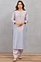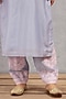 Featuring a sea blue kurta in handwoven chanderi base with dori embroidery and shell details on the yoke. It is paired with matching cotton voile pants and a silk organza dupatta.