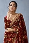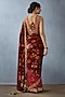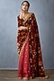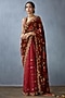 Featuring a red saree in silk organza and handwoven chanderi base with hand block print and digital print. Accentuate it with a blouse, statement earrings and block heels for a festive occasion or wedding ceremony.