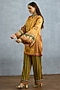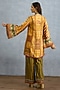 Torani presents a yellow kurta in dola silk base with bell sleeves and digital motif print. It is paired with pants. Style this kurta set with kundan earrings, juttis and a clutch for festive occasion, haldi, sangeet or cultural events.