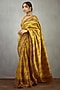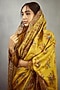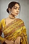 Featuring a yellow saree in handwoven chanderi silk and organza base with digital print, hand block print and aari embroidery. Accentuate it with heritage jewellery, a low bun and heels for a festive occasion, wedding or engagement ceremony.