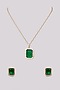 Gold Plated Emerald Stone & Zircon Pendant Necklace Set