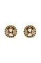 Gold Finish Pearl & Crystal Enameled Floral Stud Earrings