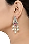 Featuring a pair of white finish handcrafted oxidized floral motifs earrings studded with glass and crystals, set in 92.5 sterling silver.