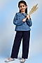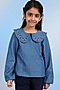 Denim Blue Denim Floral Motifs Embroidered Top For Girls