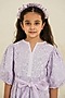 Featuring a lilac boho dress for girls in cotton base with floral embroidery and puffy sleeves.