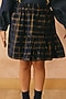 Featuring a navy skirt for girls in cotton lurex base with printed checks.