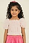 Featuring a peach striped crop top for girls in cotton base. It is paired with a contrasting pink skirt having lace detailing. For a casual look, pair the crop top with shorts and jeans.