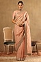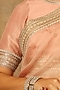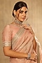 Featuring a dusty pink saree in pure silk organza base with hand embroidery. It is paired with a blouse and a pure lycra cotton petticoat. Accentuate it with statement jewellery and heels for a festive occasion.