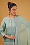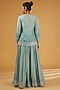 Featuring a granite green short kurta in pure silk organza base with metallic thread, cutdana, sequins, and chand boota embroidery. It is paired with pure silk cotton sharara pants having metallic stripes and embroidery, including a blended chiffon dupatta. Accentuate with statement jewellery and heels for a festive occasion or sangeet ceremony.