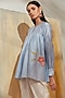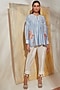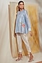 Featuring a blue pleated tunic in pure chanderi base with chawal taka embroidery. It is paired with contrasting pants in spun cotton base having tassels.