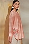 Featuring a pink slim shirt in pure chanderi base with chawal taka embroidery. It is paired with contrasting elephant-leg pants in spun cotton base.