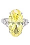 Rhodium Finish Oval Shaped Yellow and White Zircons Ring