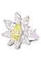 Rhodium Finish Tear Shaped Yellow and White Zircons Ring