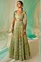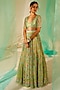 Green Tulle & Silk Organza Resham Embroidered Lehenga Set