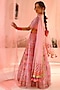 Featuring a purple lehenga in tulle and silk organza base with floral embroidery, glass beads, stone and pearl embellishment. It is paired with a raw silk embroidered blouse and a tulle motif tasselled dupatta. Elevate it with chunky jhumkas and heels for a daytime wedding or sangeet ceremony.