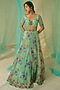 Sea Blue Tulle & Silk Organza Bead Embellished Lehenga Set