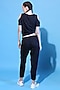 Featuring a black top in cotton lycra base with silver glitter threads. It is paired with matching tie-up yoga pants.
