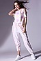 Featuring a light pink and light yellow cold shoulder tee top in cotton base with tie-dye print. It is paired with matching jogger pants.