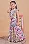 Featuring a multi-colored top for girls in cotton base with embellishment. It is paired with sharara pants. Style it with juttis and a cute hair accessory, perfect for weddings or festive occasions.