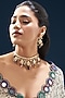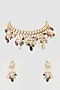 Featuring a 22kt gold plated choker necklace studded with kundan polki and semi-precious stones, set in mixed metal. It is paired with a matching pair of earrings.