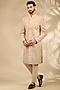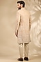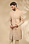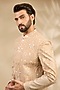 Featuring a beige sherwani in georgette base with embroidery. It is paired with trousers. Style it with a pair of mojaris for a wedding, sangeet or engagement ceremony.