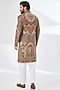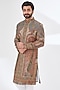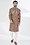 Beige Polyester Yarn Printed & Embroidered Sherwani