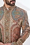 Featuring a beige sherwani in polyester yarn base with paisley embroidery and print. Perfect wear for any festive occasions or wedding ceremonies.