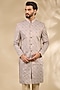 Beige Viscose Paisley Printed Sherwani Set