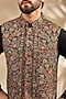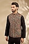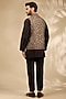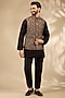 Featuring a black bundi jacket in viscose and polyester base. It is paired with a kurta and pants. Style it with a pair of mojaris for a reception, wedding, sangeet or engagement ceremony.