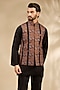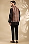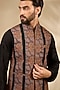 Featuring a black bundi jacket in viscose and polywool base with thread embroidery. It is paired with a kurta and trousers. Style it with a pair of mojaris for a reception, wedding, sangeet or engagement ceremony.