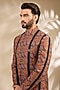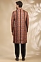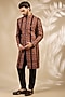 Featuring a black sherwani in viscose and polywool base with thread embroidery. It is paired with trousers. Style it with a pair of mojaris for a wedding, sangeet or engagement ceremony.