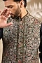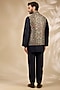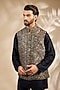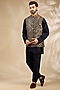 Featuring a black bundi jacket in viscose and polyester base with zari embroidery. It is paired with a kurta and trousers. Style it with a pair of mojaris for a reception, wedding, sangeet or engagement ceremony.