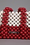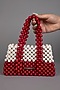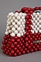 Featuring a cherry red and ivory clutch in crystals base with color-block detailing and a broad beaded belt. Carry it as a statement piece with an evening gown or traditional attire for weddings, events, gala nights, or festive celebrations.