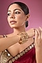 Featuring a pair of gold finish temple bangles, set in brass. Perfect wear for festive occasions, sangeet or wedding ceremonies