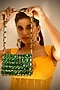 Featuring a green clutch studded with rhinestones and crystals. Carry it as a statement piece with an evening gown or traditional attire for weddings, events, gala nights, or festive celebrations.