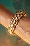 Featuring a pair of micro gold finish bangles studded with kundan polki and pearls, set in brass. Ideal for festive occasions, weddings, or elevating your elegant evening look.
