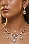 Featuring a micro gold finish necklace studded with kundan polki and pearls, set in brass. It is paired with a matching pair of earrings. Ideal for festive occasions, weddings, or elevating your elegant evening look.
