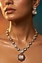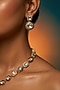Featuring a micro gold finish necklace studded with kundan polki and pearls, set in brass. It is paired with a matching pair of earrings. Ideal for festive occasions, weddings, or elevating your elegant evening look.