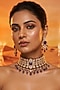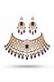Featuring a micro gold finish necklace studded with kundan polki and pearls, set in brass. It is paired with a matching pair of earrings. Ideal for festive occasions, weddings, or elevating your elegant evening look.