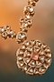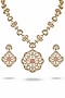 Featuring a micro gold finish necklace studded with kundan polki and pearls, set in brass. It is paired with a matching pair of earrings. Ideal for festive occasions, weddings, or elevating your elegant evening look.