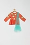 Peach Organza Pant Set For Girls
