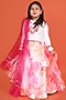 Pink & Orange Organza Tie-Dye Lehenga Set For Girls