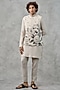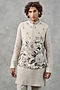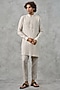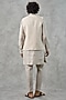 Featuring a beige bundi jacket in blended rayon base with moti work and thread embroidery. It is paired with a kurta and pants. Style it with pair of mojaris and a bracelet for a festive occasion, sangeet, engagement or wedding ceremony.
