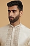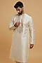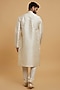 Featuring a beige chikankari kurta in silk base. It is paired with pyjama pants. Elevate this kurta set with kolhapuri sandals for a festive occasion, daytime pooja or intimate wedding?rituals.