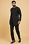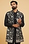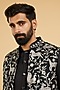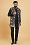 Featuring a black jacket in art silk base with embroidery. It is paired with a kurta and pants. Style it with classic mojaris for a sangeet or engagement ceremony, exuding charm and elegance.