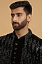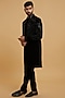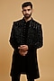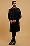 Featuring a black indowestern in blended rayon base with mirror work. It is paired with a kurta and pants. Style it with classic mojaris for a wedding, sangeet or engagement ceremony, exuding charm and elegance.
