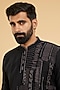 Featuring a black kurta in blended viscose base with thread embroidery. It is paired with churidar pants. Elevate this kurta set with kolhapuri sandals for a festive occasion, daytime pooja or intimate wedding rituals.