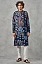 Featuring a blue kurta in art silk base with print, stone, sequins and beadwork. It is paired with churidar. Style it with mojaris for a festive occasion, cultural event, wedding or engagement ceremony.