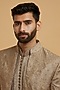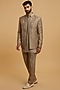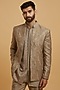 Featuring a brown indowestern in art silk base with moti work and embroidery. It is paired with a kurta and pants. Style it with classic mojaris for a wedding, sangeet or engagement ceremony, exuding charm and elegance.