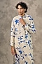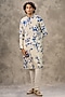 Featuring a cream kurta in art silk base with print, stone and beads work. It is paired with pyjama pants. Style it with mojaris for a festive occasion, cultural event, wedding or engagement ceremony.